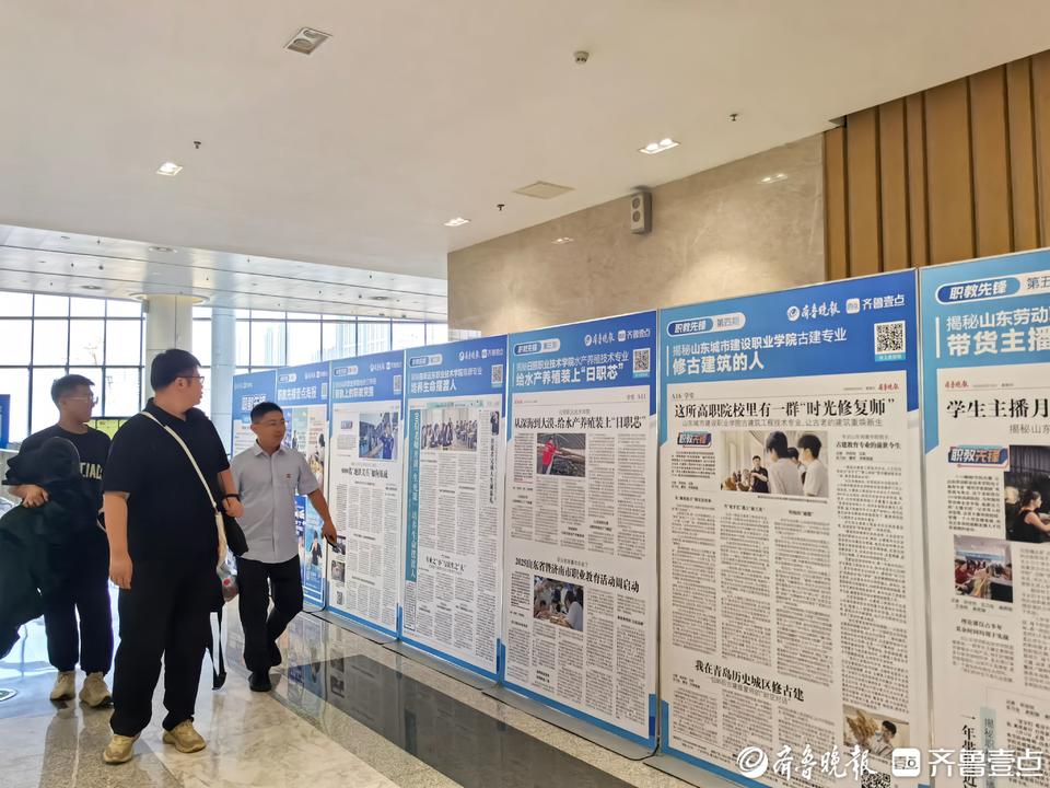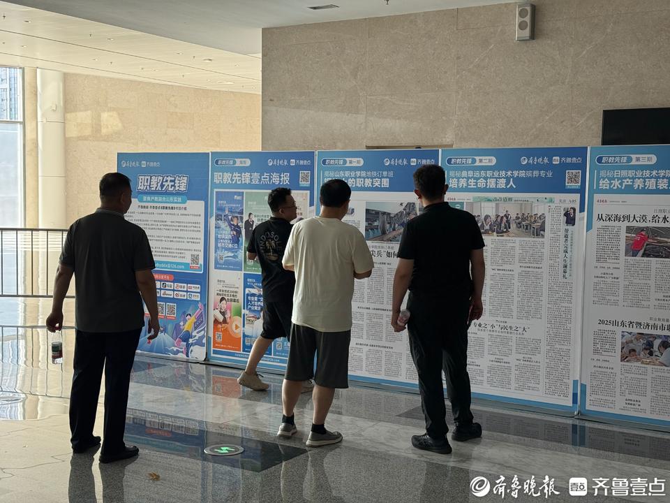 7月19日,第二十三届山东高招会高职(专科)场开幕!展会入口,整齐排列的海报展板吸引了高考生和家长驻足。记者注意到,这是由齐鲁晚报·齐鲁壹点开设的《职业先锋》新闻专栏,8期报纸版面对应的是8所高职院校的特色专业,聚焦职校生如何用一技之长赢得出彩人生。