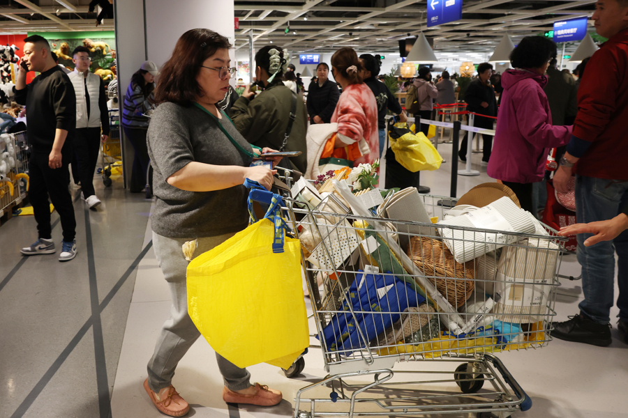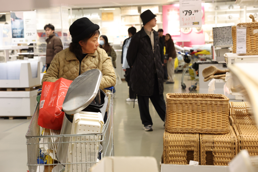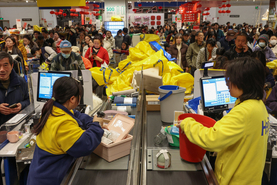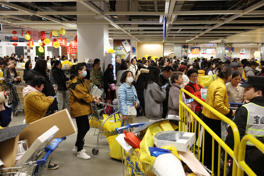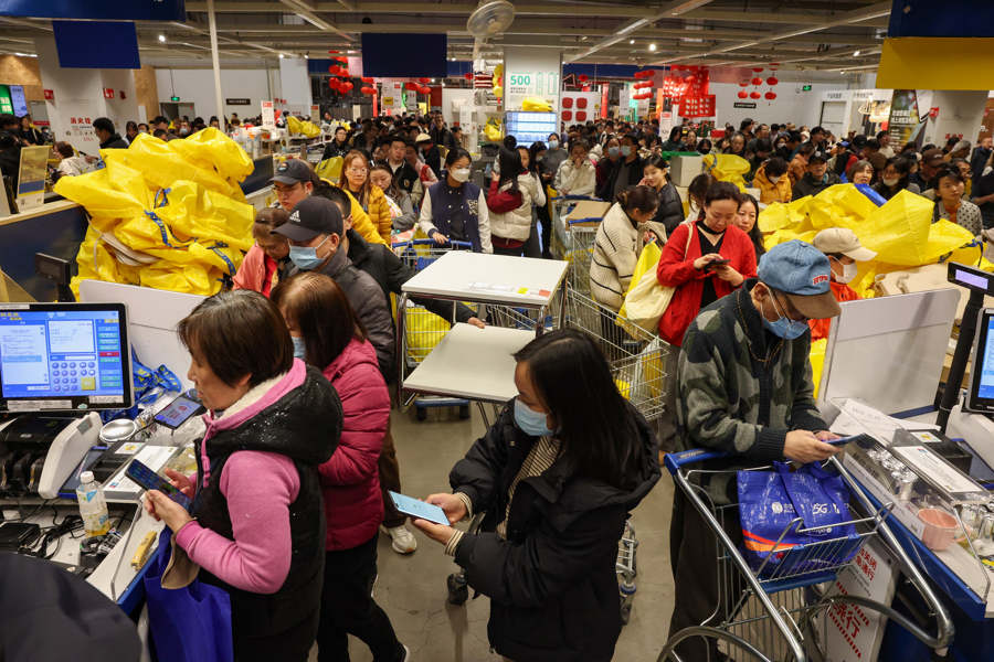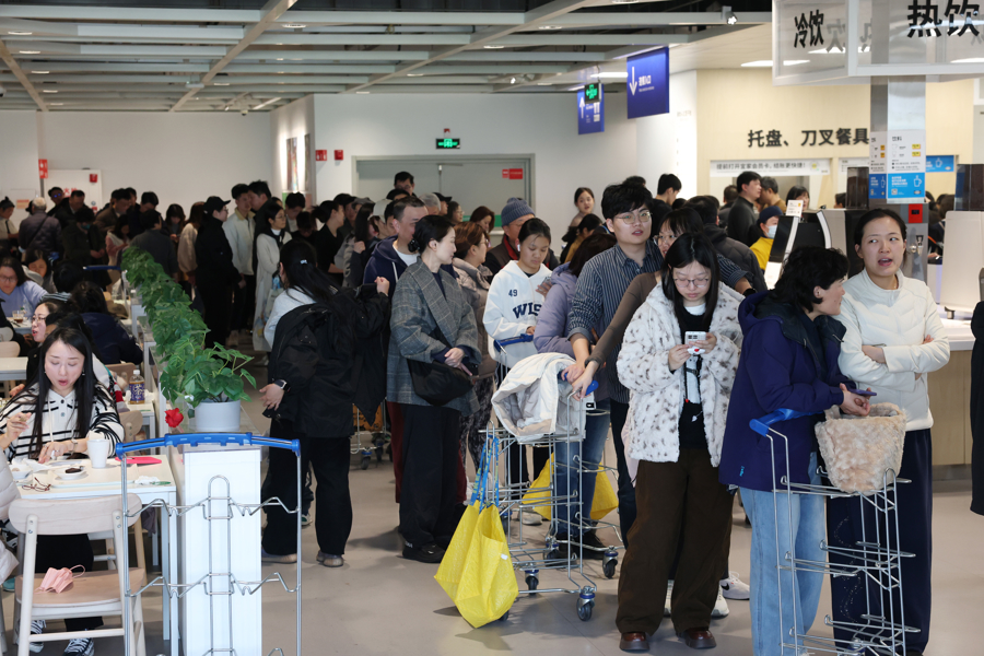 1月15日,上海宜家商场,买单的市民在收银台前排起了长队。