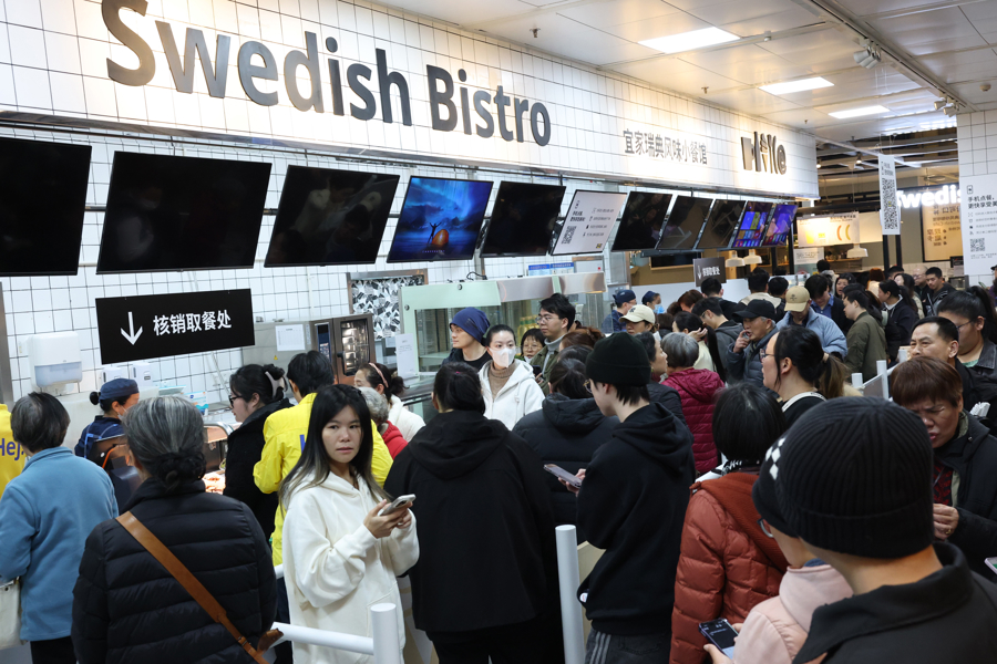 1月15日,上海宜家商场瑞典小餐馆前排队的市民人流如潮。