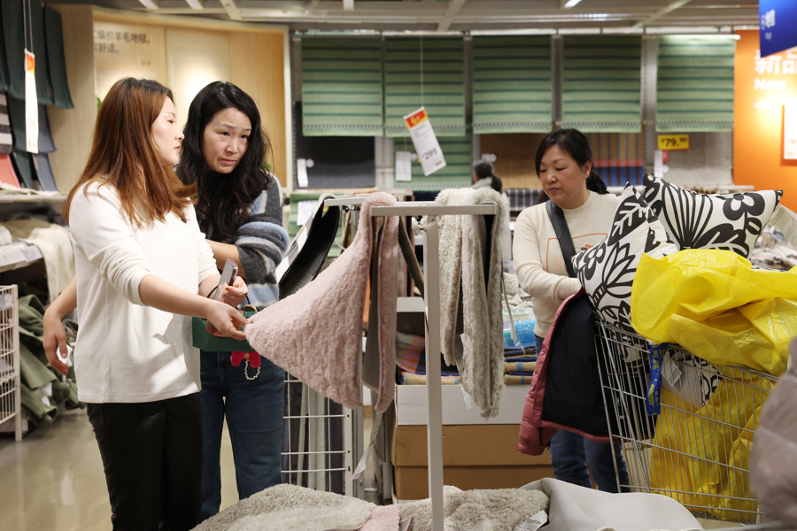 1月15日,上海宜家商场,市民在挑选打折商品。