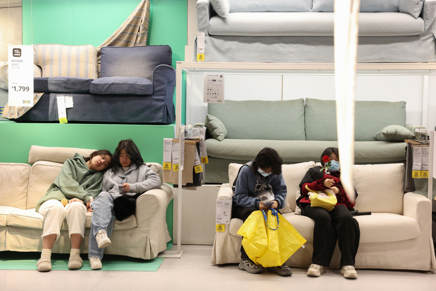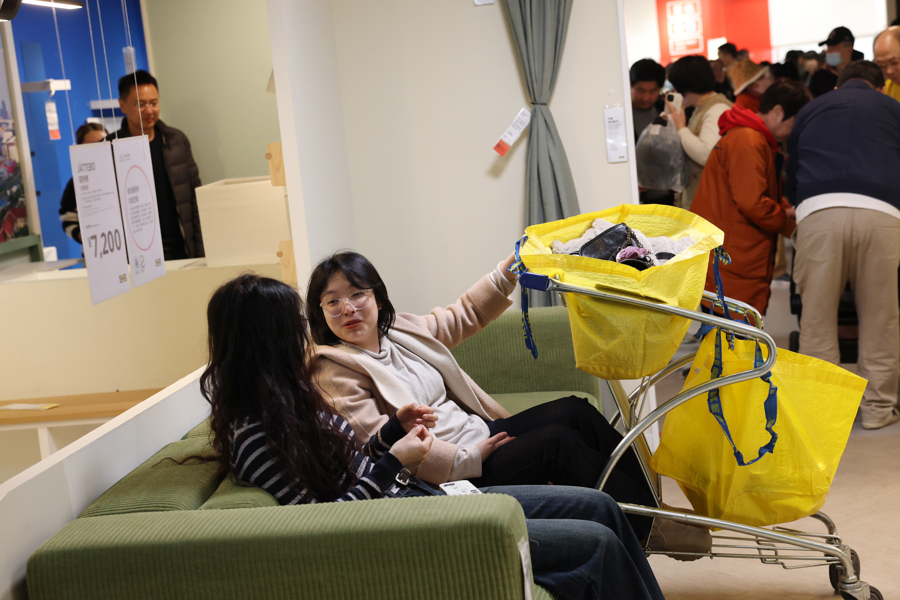 1月15日,上海宜家商场,市民在沙发上休息。